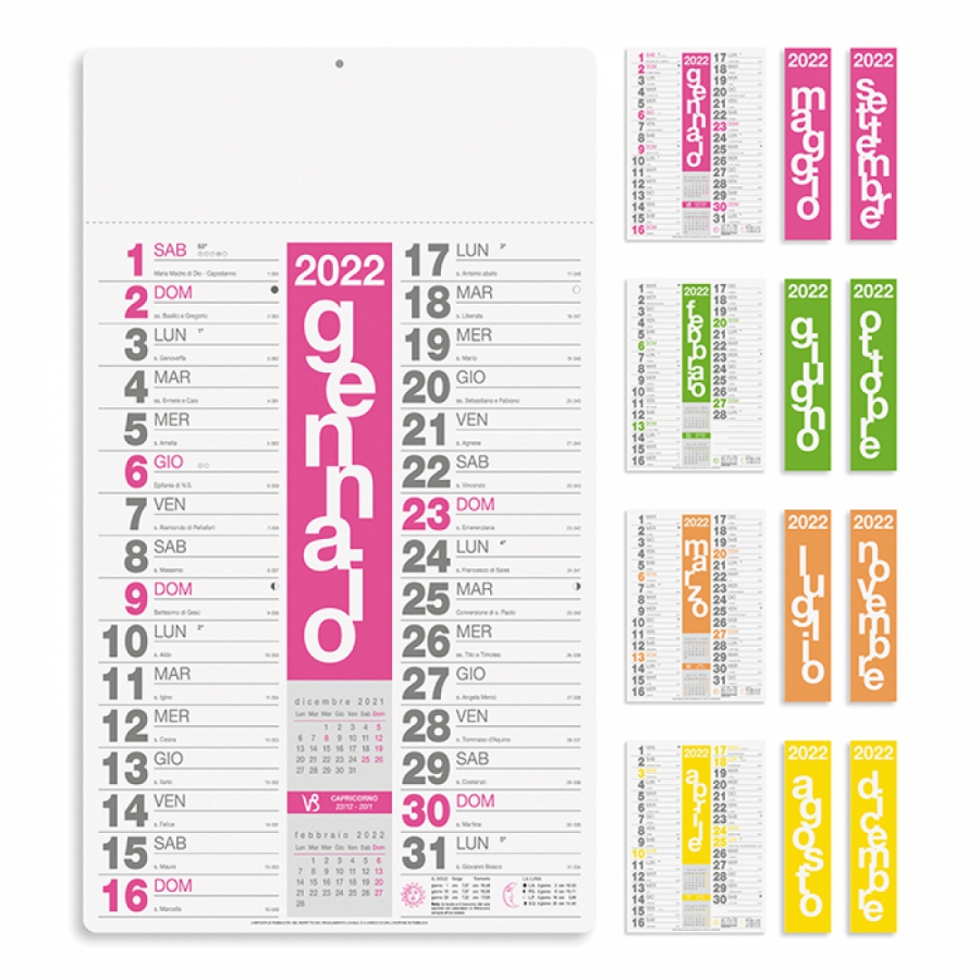 Calendario olandese mensile 12 fogli in carta naturale 70gr. Testata fustellata rinforzata triplo strato 31x9cm personalizzata con stampa digitale a colori